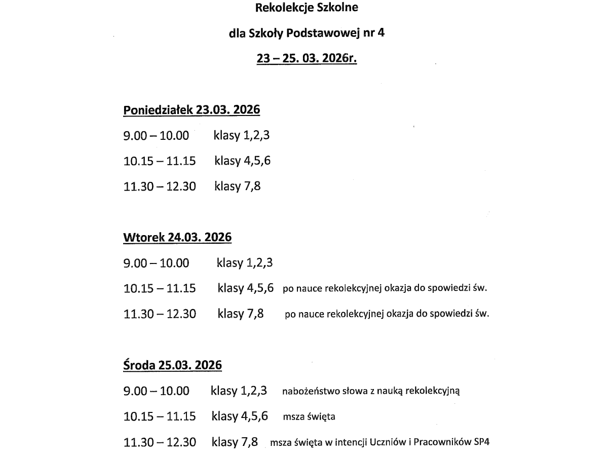 W dniach rekolekcji nie ma lekcji - dzieci chodzą na nauki do kościoła.