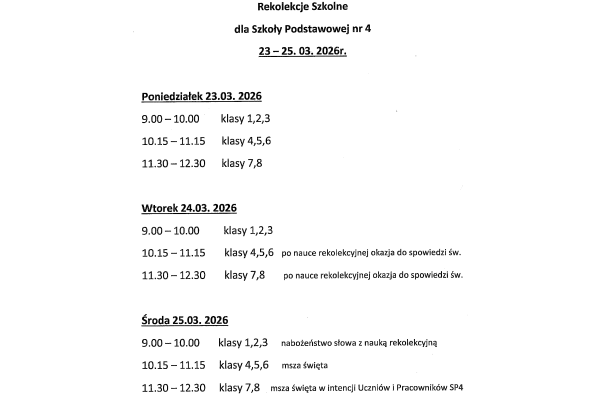 Termin rekolekcji: 23 - 25 MARCA 2026 r.